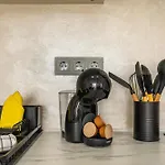 - ❓Is er een keuken beschikbaar in het appartement voor gasten?Ja, het appartement is uitgerust met een ingerichte kitchenette en biedt ook een koffie/theezetapparaat, een koelkast en keukengerei aan.